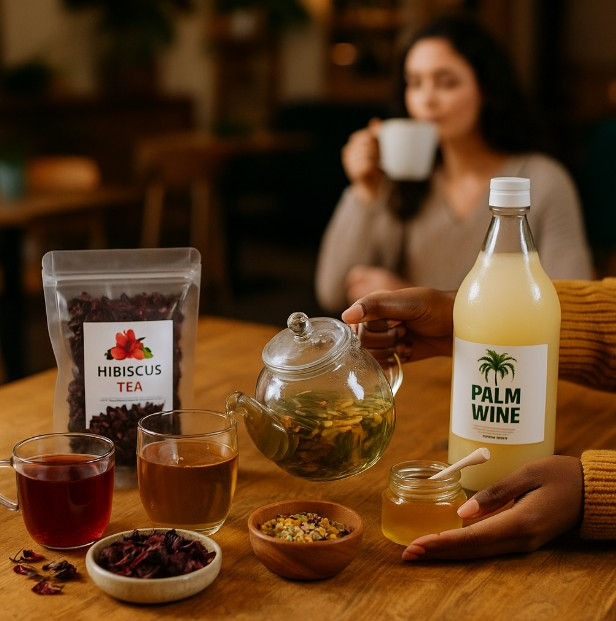 Includes: Green Tea, Black Tea, Hibiscus, Moringa, Lemongrass, Coffee Beans, Ground Coffee, Medicinal Roots (e.g., Soursop, Bitter Leaf).